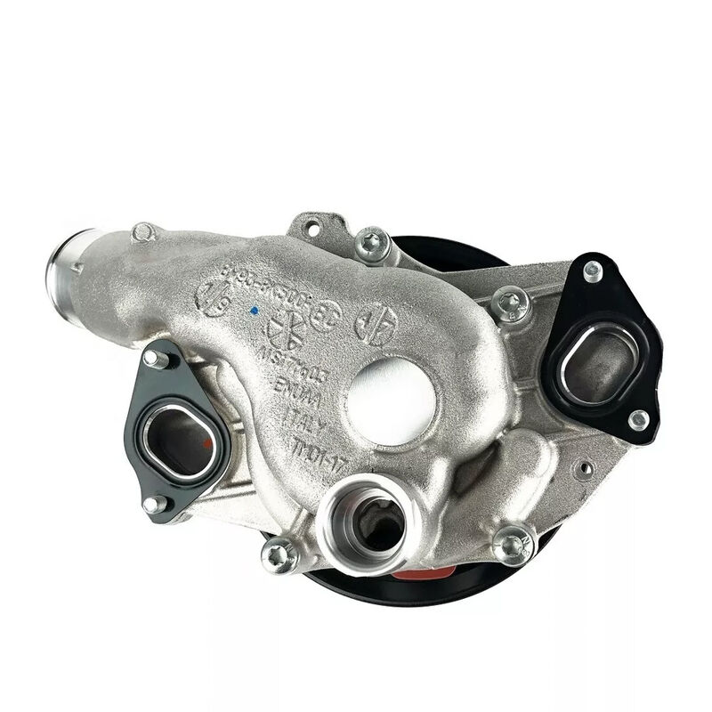 The water pump circulates a mixture of water and coolant throughout the engine block, cylinder head, and radiator to maintain an optimal operating temperature. It is a belt-driven pump that ensures the engine reaches its ideal temperature quickly and stays within a safe range, preventing overheating under all driving conditions.